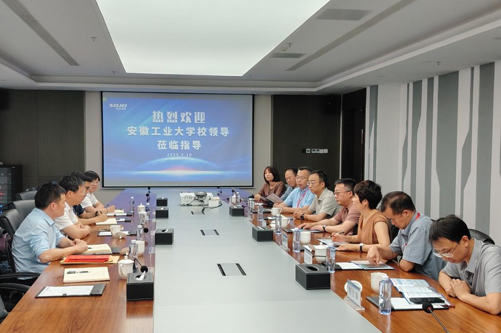 王俊介绍了学校的发展历程、学科专业特色、人才培养与就业创业等方面情况,他指出,学校始终紧跟国家和时代对人才培养的需求,不断丰富和完善人才培养体系,主动服务国家工业现代化和安徽“三地一区”建设。学校专业设置与企业的人才需求高度契合,希望双方在人才培养、科研合作、实习实训基地建设等方面建立更紧密、更深层次的合作关系,实现学校、企业、学生三方共赢。