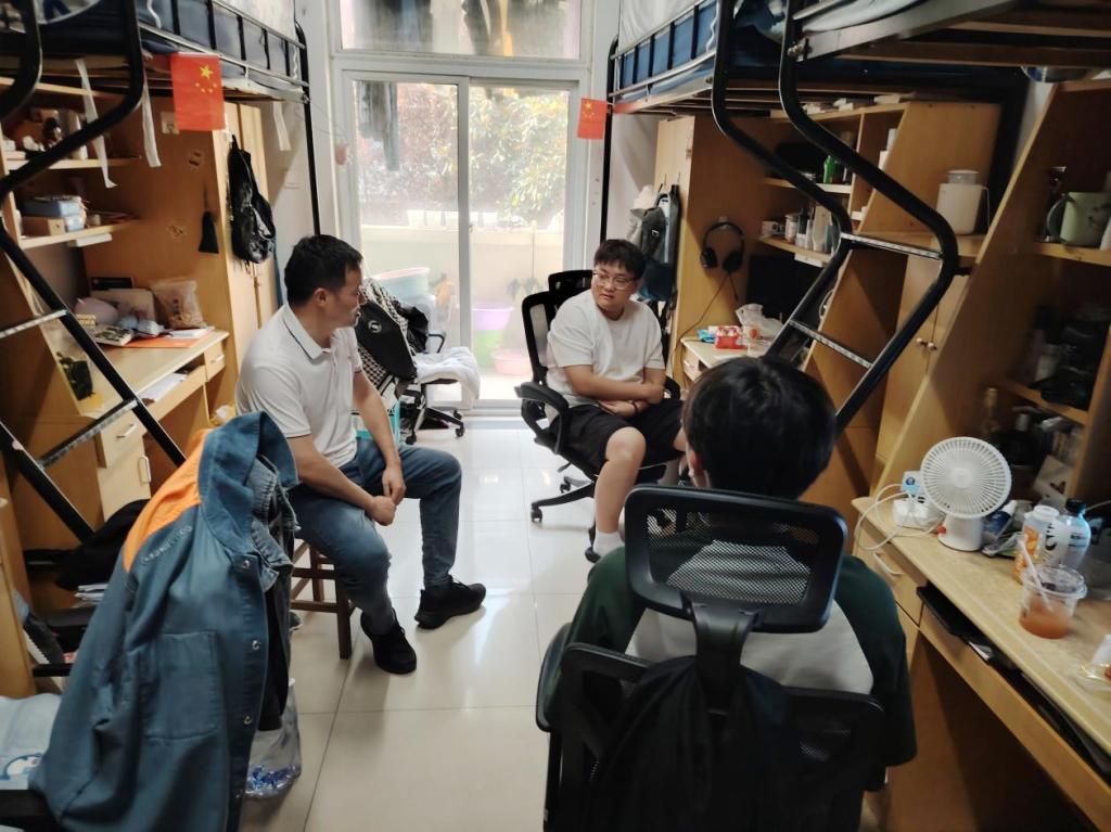 党委副书记、纪委书记、副院长孔洋波率领本科生与研究生各年级辅导员深入学生宿舍,看望慰问备考学子,关切询问学习生活,面对面给予关怀指导。