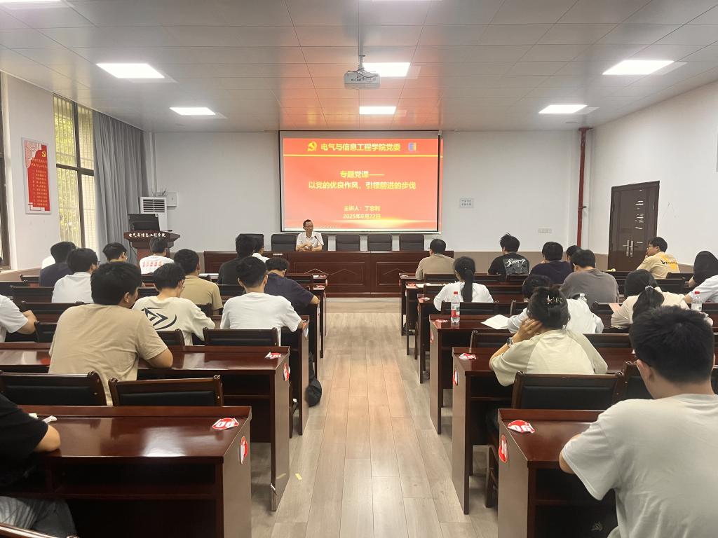党委书记丁忠利、辅导员蒋安东、2025年上半年新发展党员及学生电气工程党支部全体党员参加了活动。