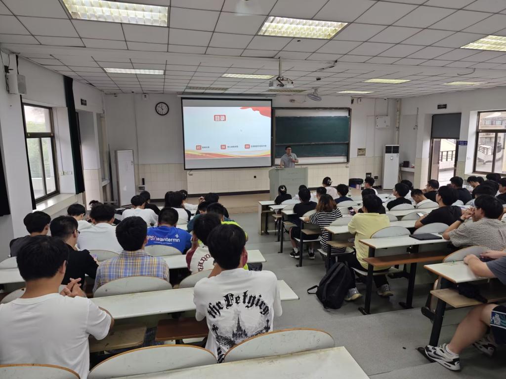 2023级新学期年级大会在秀山校区阶梯教室召开。2023级辅导员张悦、蒋安东围绕“锚定大三关键期,擘画生涯新蓝图”为主题,为全体同学作新学期动员讲话。大会由辅导员张悦主持,2023级全体学生参加本次会议。