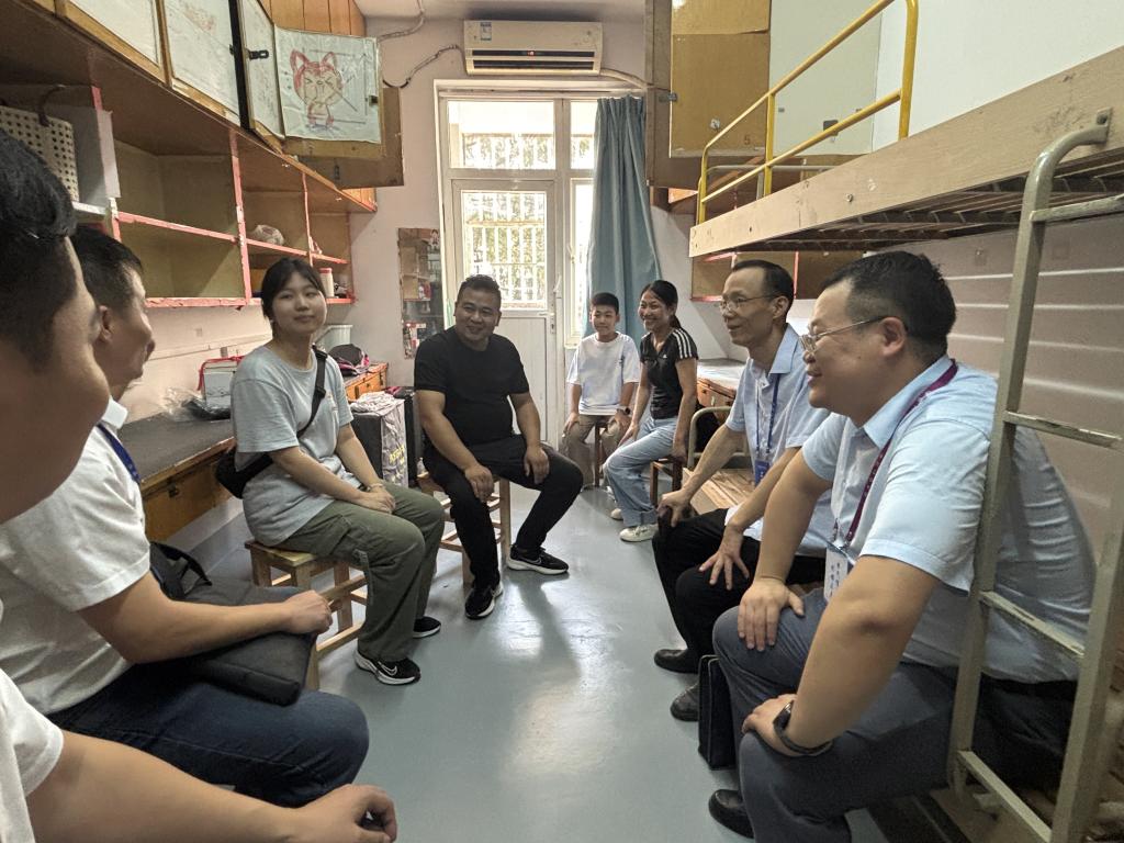 领导班子一行深入新生宿舍,开展面对面交流,亲切慰问2025级新生。