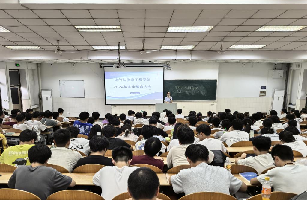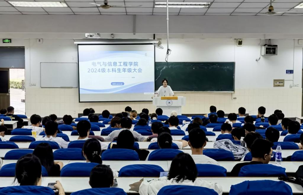 在秀山校区阶梯教室组织召开2024级本科生年级大会。2024级辅导员从婉露、汤敏、温健竹及全体2024级本科生参加此次年级会。本次会议围绕学情分析、安全教育、防电诈宣传、心理健康教育及日常事务五个方面展开系统讲解与深入引导,为新学期学生们明确目标、凝聚力量。