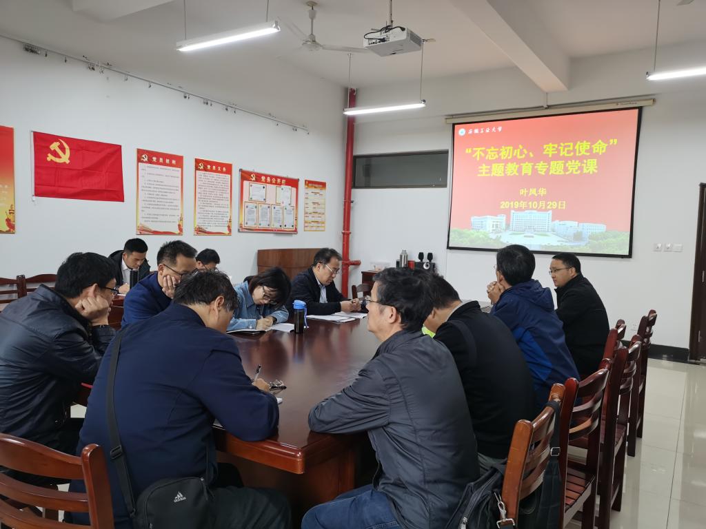 院党委书记叶凤华结合2019年全国高校院系党组织书记示范培训班学习的体会感受,以“以习近平新时代中国特色社会主义思想为指导,加强和改进基层党支部建设”为题,为自动化党支部、电工电子党支部全体党员上了一堂生动的党课。党课按照“四个讲清楚”的要求,围绕“对初心和使命的感悟”“习近平新时代中国特色社会主义思想特别是总书记关于教育的重要论述”“基层党建工作中存在的问题和不足”“如何加强和改进基层党支部建设”这四个问题展开。他指出,高校的初心和使命是为党育人、为国育才,作为基层党组织主要负责人,始终把“坚持立德树人根本任务,围绕发展抓党建,抓好党建促发展”作为自己的初心使命。结合全国教育大会、全国高校思想政治工作会议等重要会议精神以及网络典型案例,他强调,总书记围绕高等教育、高校党建和思政工作方面的讲话精神主要聚焦在“坚持和加强党对高校的全面领导”“坚持立德树人根本任务”“构建思想政治工作体系”三个方面,要求大家把总书记的育人思想、创新理论有机融入到课程中去,真正培养担当民族复兴大任的时代新人。针对当前基层党支部建设中存在的问题,他梳理分析了产生问题的原因,并从组织“三会一课”、开展主题党日活动、开展思政工作、开展组织生活会和民主评议党员、做好支部的文档管理等方面提出了加强和改进工作的思路措施。