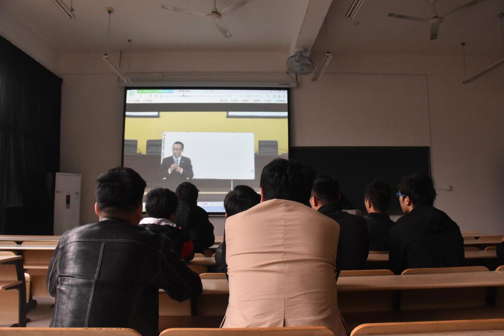 于电气楼组织学生观看“就有未来——全省高校同上一堂就业指导课”网络直播。电气哔咔漫画