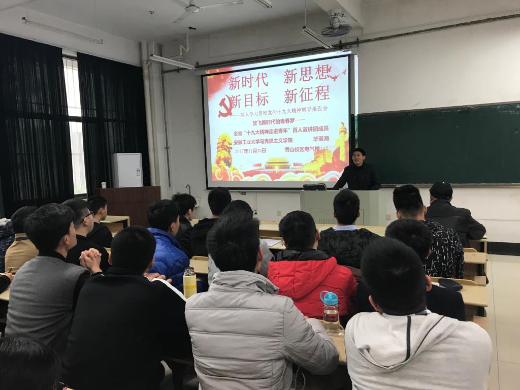 11月20日下午,电气学院组织举办深入学习贯彻党的十九大精神辅导报告会。主讲人是安徽省“十九大精神走进青年”百人宣讲团成员,安徽工业大学马克思主义哔咔漫画