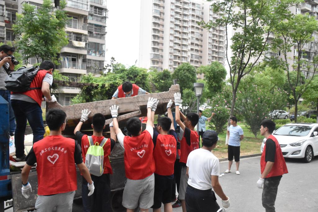 再多的杂草也消灭不了队员们志愿服务的热情,经过短暂的休息后,实践队又来到了小区楼下,帮助居民清理楼道中的杂物并放到垃圾车中。当有大爷问到在做什么的时候,周书记亲切地回答道:“这是安工大的学生来帮助我们清理出楼道中堆积的杂物,你们自己拿不动,不方便拿,他们来帮忙,让楼道更整洁,这样你们住的不就更舒服了。”大爷笑着说:“好事,好事。”居民的满意,是对实践队队员们辛勤工作最大的肯定。