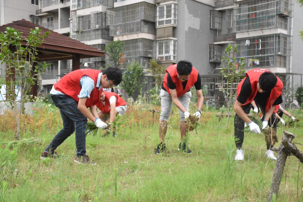 实践队的队员们在社区周书记的带领下,首先准备对小区的杂草进行清理。见到这些杂草,周书记讲道:“小区的绿化我们一直在搞,社区的每一处都是专门的人员在负责,但是人员还是有限的,你们的到来给我们的工作提供了很大的帮助,真的是太感谢了。”队员们都是90后了,又是家里的独生子女,很多人都没有干过这样的活,但是作为21世纪的大学生,他们没有犹豫,自发向杂草走去,背靠烈日,弯下腰,一点一点地清除杂草,虽然第一次做,效率不高,动作不熟练,但是他们的目的是相同的,都是为帮助营建更好的社区,建造更好的文明城市。他们没有一丝一毫的抱怨,有的只是干活的热情与辛勤的汗水。