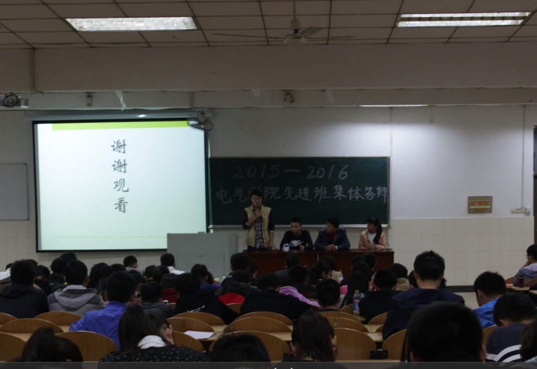 初审,最终有14个班级进入现场评审答辩环节。每个班级答辩小组由班长、团支书、2名其他班干或者普通同学组成。评审答辩分为班级基本情况、现场展示和答辩等三个环节。答辩会上,各班级代表对本班先进班集体创建情况进行了精彩汇报,汇报内容包括班级管理、学风建设、特色活动和班级荣誉等方面,展现了各班级的青春风采和对未来的美好展望。条理清晰、详略得当地回答了评委老师提出的问题。精心制作的PPT,发言人的精彩解说让大家对各个班级有了更深的了解。答辩过程中,有的班级幽默风趣、气氛活跃,也有的振奋人心、发人深省。其中,自141班展示了三年来班级建设的各项优秀成果,仪Z131班展示了全班同学取得的优秀成绩和诸多竞赛的获奖荣誉,为电气哔咔漫画