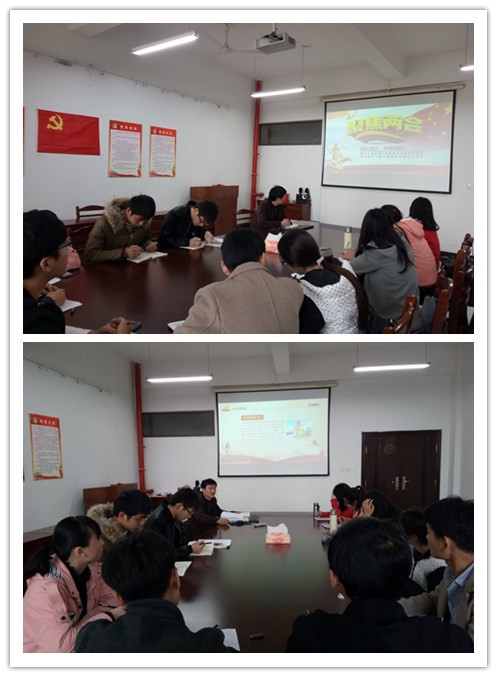会议开始,孔洋波带领大家学习了2017年政府工作报告,各位党员就十三五规划、脱贫攻坚、精准扶贫、大学生就业、物价水平、稳定房价和收入分配等热点问题进行讨论并发表了感想。2014级赵文举同学表示,将继续深入学习“两会”精神,关注国家大事,关注国家未来发展,把自己的理想、学习和工作与社会需要紧密结合,积极践行社会主义核心价值观,与祖国共同成长。2013级沈大伟表示:自己即将走上工作岗位,正值国家快速发展和政府对大学生就业十分重视,为青年施展才华报效祖国提供了更加广阔的平台,报告中“完善就业政策,加大就业培训力度,加强对灵活就业、新就业形态的支持;实施好就业促进、创业引领、基层成长等计划,促进多渠道就业创业”等大力促进就业创业的举措让我对未来就业择业充满了信心。2014级钱学文同学表示:作为一名党员,在今后的工作,学习和生活中,要从点滴做起,学习身边的好人好事,争做对社会对老百姓有意义的事情,实现自己的人生价值,逐步完成自己的目标。会上,支部党员们还一起学习了总书记在高校思想政治工作会上的讲话精神。