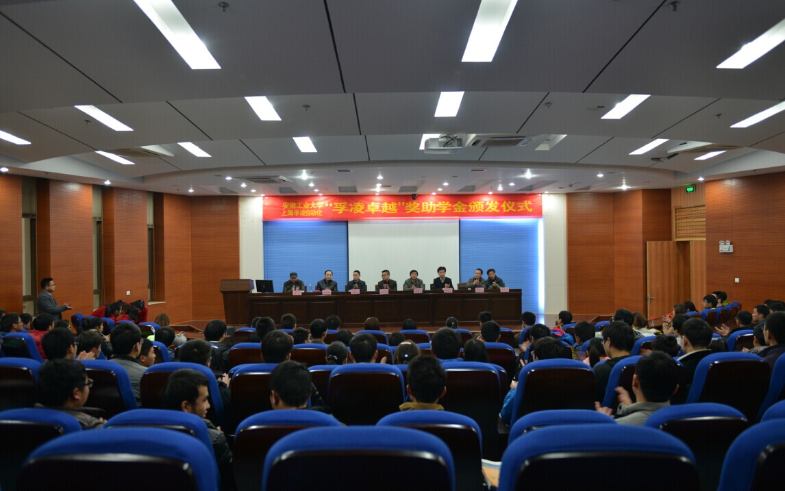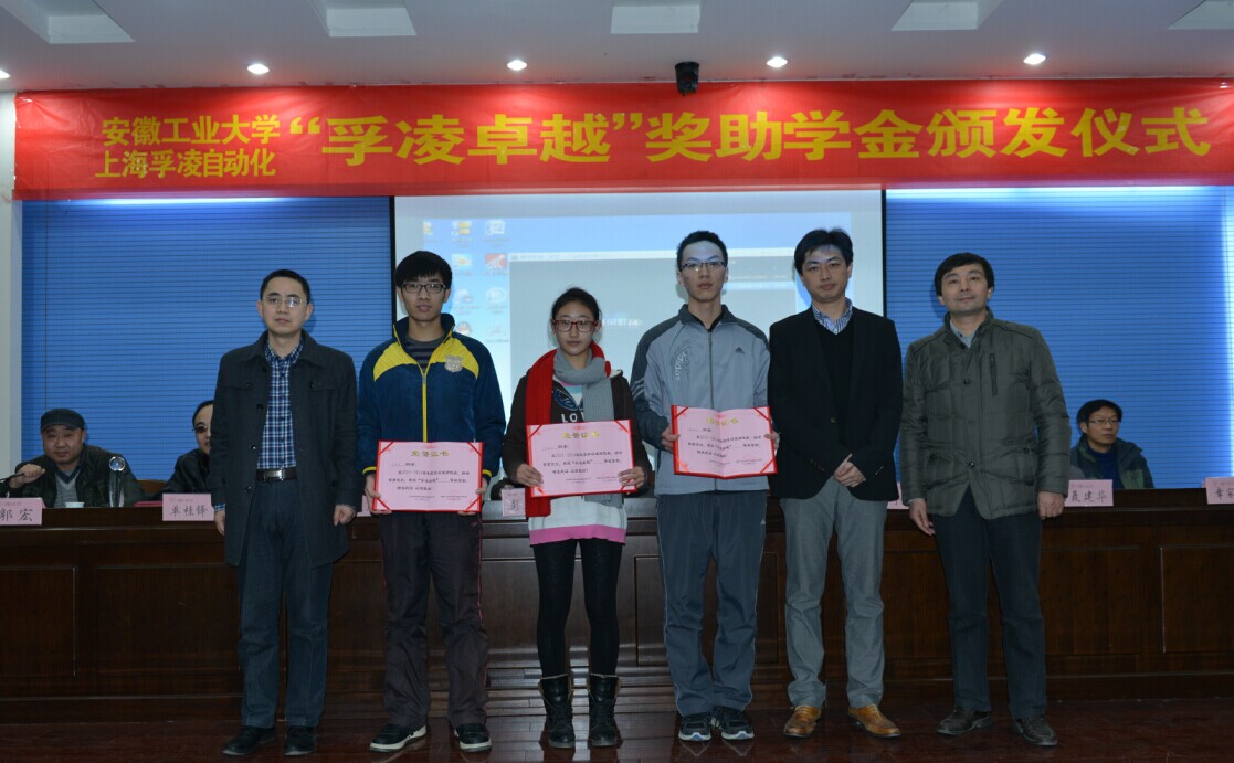 1月4日下午,安徽工业大学上海“孚凌卓越”奖助学金2013-2014学年颁奖典礼在秀山校区图书馆一楼报告厅隆重举行。上海孚凌自动化公司董事长彭正伟先生、总经理刘柯韦先生,学校教育发展基金会办公室主任单桂锋,哔咔漫画