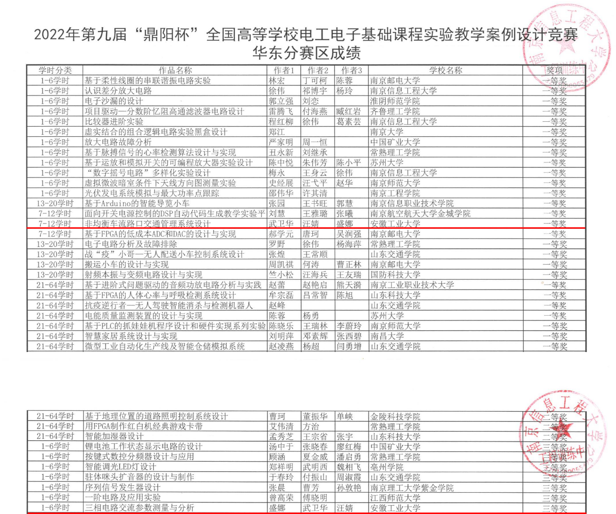 该赛事由中国电子学会与国家级实验教学示范中心联席会电子学科组联合举办,旨在进一步推动电工电子基础课程实验教学内容探索、工程实践、自主创新的改革,促进实验教学水平与教学质量的提升,推广各高校实验教学优秀教学资源共享,激发广大教师开展实验教学建设与改革热情。本次华东分赛区六省一市共有51所高校135支队伍参赛,涉及电路基础与电路分析、信号与系统、信号处理、电工学、电子技术-数电与模电、模拟电子电路-电子线路、电子电路综合设计、电子系统设计等课程的实验教学内容。参赛队伍中有107支队伍获奖,其中一等奖27支,二等奖43支,三等奖37支。