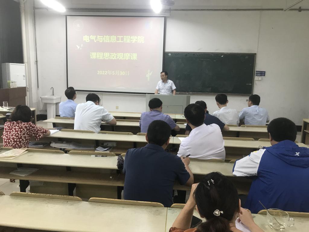 在电气楼112教室举行课程思政示范课教学观摩活动。校督导组部分成员、院领导、各系室主任、支部书记和部分老师参加了示范课教学观摩活动,活动由教学副院长程木田主持。