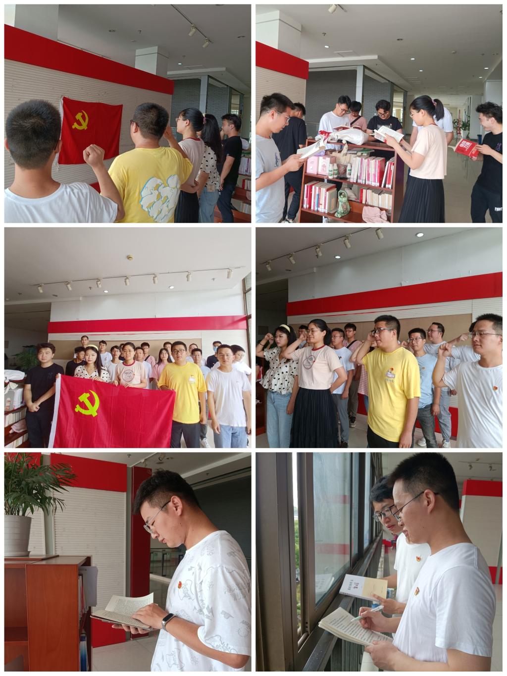 研究生学术型党支部在振华图书馆四楼“四史”学习教育园地开展“重温入党誓词,共读党史著作”主题活动。在支部书记赵传荣的带领下,支部所有党员佩戴党员徽章、面向党旗庄严宣誓,字字铿锵、句句深意。宣誓结束后,赵传荣强调,入党誓词就是我们党员的行动指南,也是我们共产党人的座右铭;只有不断重温,才能确保我们坚定理想信念,始终朝着正确的方向行驶,汲取前进的精神伟力,提高对党的事业的忠诚意识和自豪感、责任感,永葆共产党员的政治本色。