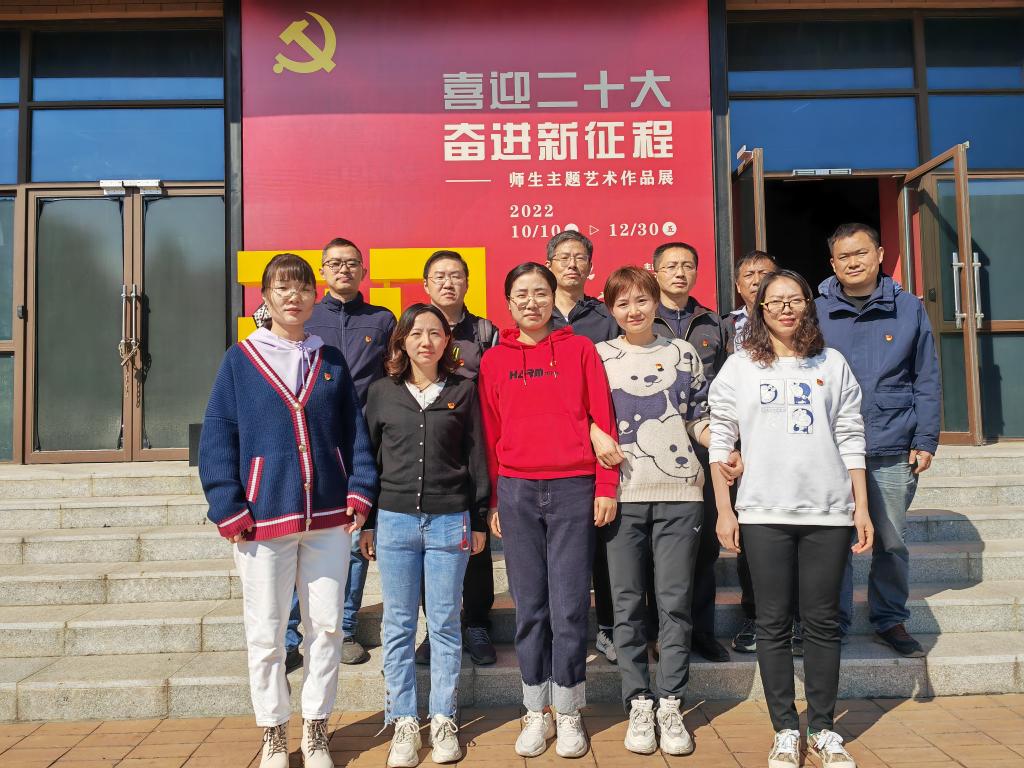 实验中心教工党支部组织党员和老师参观学校设计艺术馆里的“喜迎二十大,奋进新征程”师生主题作品展。