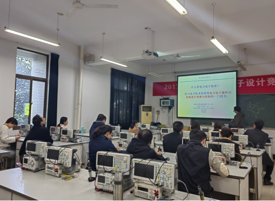 之后,在模拟电子实验室221举行教学观摩研讨活动,由罗进老师主讲。罗进针对电力电子技术实验中功率场效应管晶体管MOSFET特性及驱动电路进行讲解,讲课过程自然流畅,内容前后具有较强的逻辑性,能够较好地将课程内容传达给听课者。讲课结束后,出席教师针对罗进的讲课展开热烈的讨论,提出了自己的观点与建议,教学经验丰富的教师也分享了自己的教学方法。
