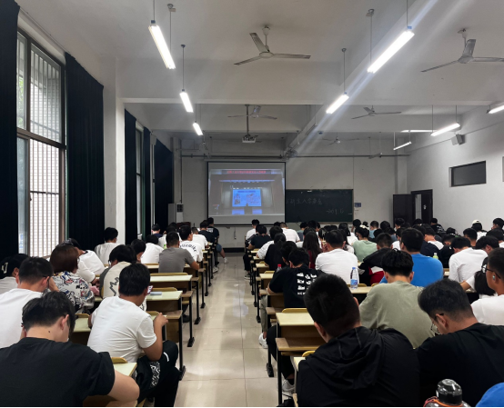 研究生辅导员张悦以及140余名研究生新生在电气楼112集中观看学习。