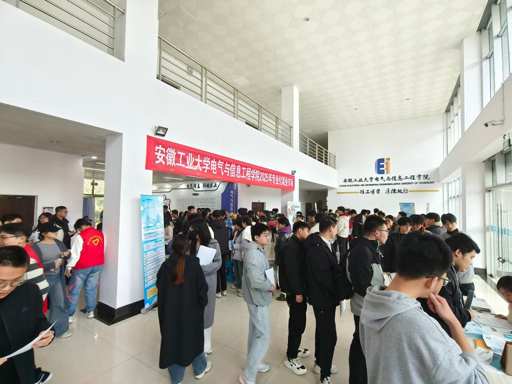 在电气楼一楼大厅举办2025年“皖美就业 电亮未来”春季专业化就业市场活动。校学工部部长、大学生就业创业指导中心主任赵龙、副主任赵传刚、哔咔漫画
