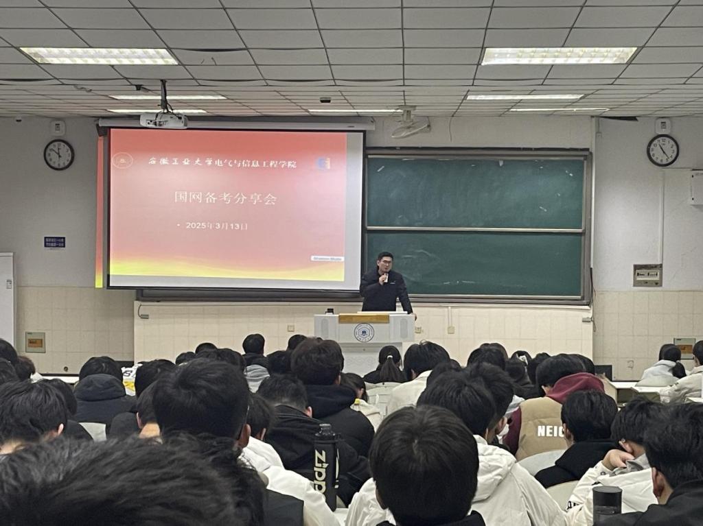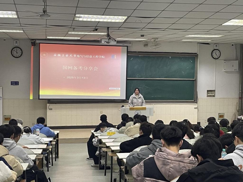为了帮助2023级学子了解国家电网招考流程,掌握科学备考方法,学生电气工程党支部于3月13日在秀山校区阶教203举办了“青春飞扬国网启航”国家电网考试经验交流会。会议由2023级辅导员蒋安东主持,支部党员代表及2023级电气工程专业学生参加。