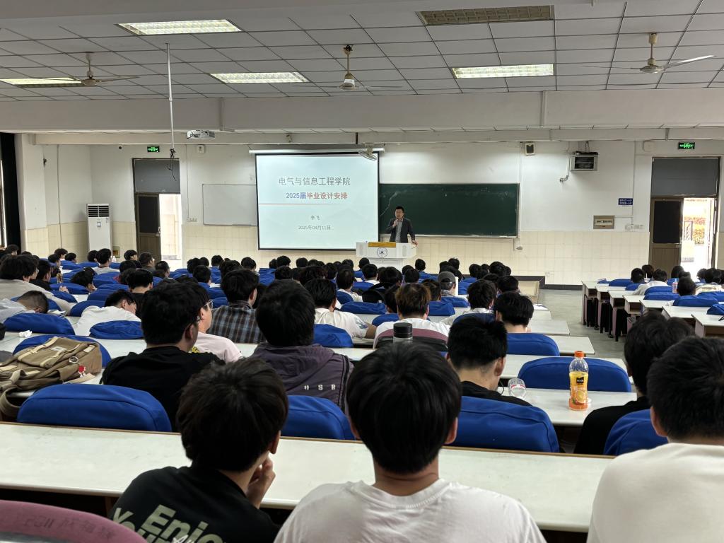 李飞首先从毕业设计流程、书写格式、开题答辩规则及时间要求等七个方面对2025届毕业设计工作进行具体安排。要求全体毕业生落实三项要求:一是遵守学术规范和恪守学术道德,确保论文逻辑体系严密、创新点突出,严禁任何学术不端行为;二是严格执行导师沟通机制,定期向导师汇报;三是建立毕业设计进度台账,预留答辩流程调整缓冲期。