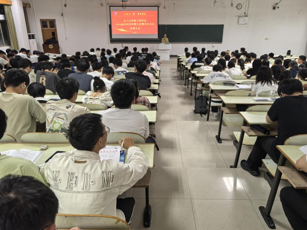 在佳山校区第三教学楼203教室召开2024级本科生年级大会暨考风考纪教育大会。本次会议由2024级辅导员汤敏主讲,全体2024级学生参与。