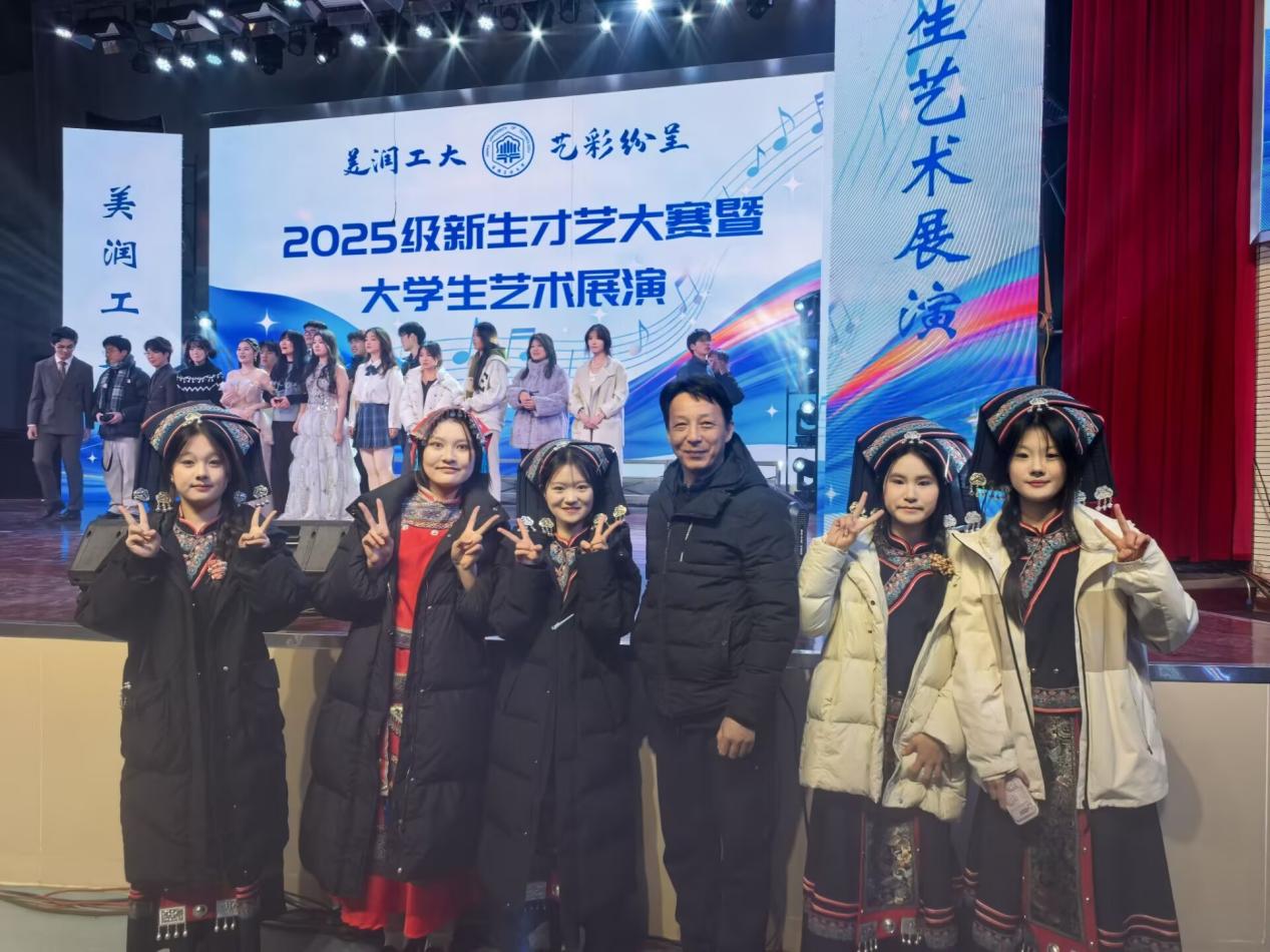 舞台上,参赛学子们身着绚丽的彝族传统服饰惊艳亮相。清脆悠扬的葫芦丝旋律率先响起,婉转的乐声瞬间将现场观众带入彝家山寨火把节的热闹氛围中。随着节奏渐趋欢快,舞者们踏着民族特色的步伐翩翩起舞,举手投足间与旋律紧密契合,生动再现了彝家儿女围着篝火载歌载舞、庆祝节日的喜悦场景。绚丽的服饰在灯光映照下流光溢彩,音乐与舞蹈交相辉映,不仅传递出彝族文化的深厚魅力,也彰显出电气学子饱满的青春热情,赢得评委与现场观众的热烈掌声。