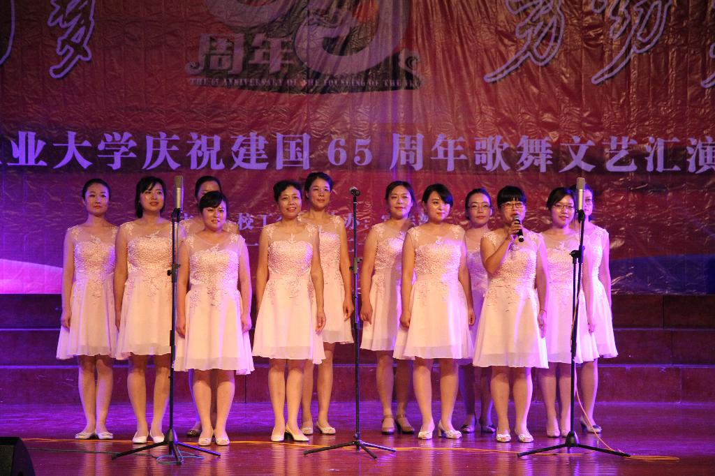 广大教职工热爱祖国、热爱人民的深厚感情,展示全校师生热爱生活,奋发进取的精神风貌,丰富校园文化生活,学校在秀山校区新大学生活动中心举办了“中国梦劳动美”暨庆祝建国65周年歌舞文艺汇演。