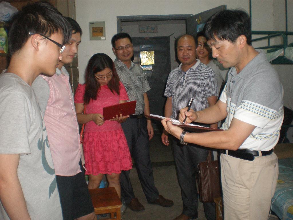 走访中,每走进一个学生宿舍,院领导和老师都细致了解毕业生的工作落实情况、离校前存在的困难、行李准备情况等。在了解个别同学还在等考试成绩上网时,领导立即电话催促任课老师尽快上传成绩;在得知几位同学还在等面试通知时,老师鼓励他们好好准备,尽早确定工作单位,今后要一步一个脚印,踏实走好人生路。同时,院领导还送去全院师生员工的真切关怀与衷心祝福,一再嘱咐他们在新的环境和工作岗位上继续学习,勤奋工作,争创佳绩,用自身的实际行动感恩母校和回报社会。