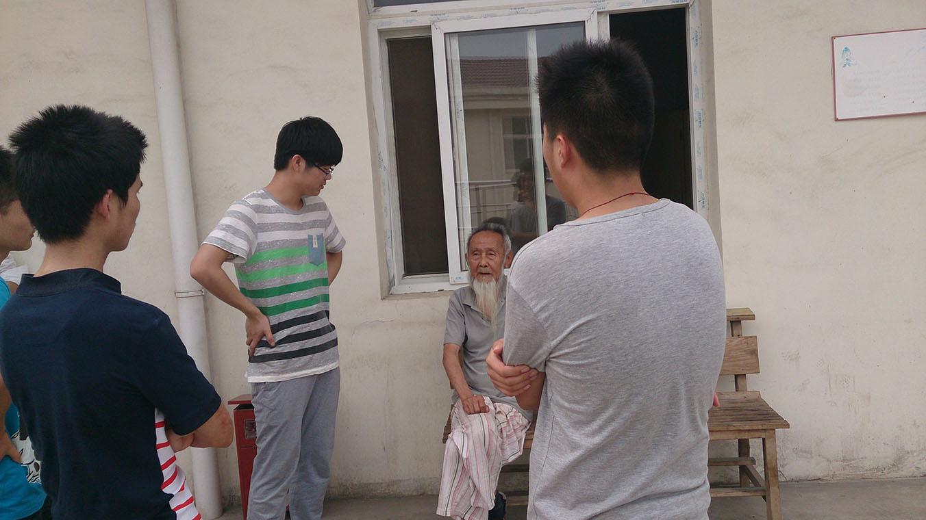下午3:00,班级集体到达向山镇敬老院,他们首先找到了相关负责人,在得到探望许可后活动开始。班上的女生将准备好的煮粥食材交给了负责伙食的阿姨。男生们则负责将准备好的水果、点心送给敬老院的每位老人,大家分组跟老人亲切交谈起来。其中,一位退休的解放军战士跟大家讲述了所经历的祖国发展历史。老人言谈思路清晰,表述流畅,使同学们获益良多,交流气氛十分融洽。