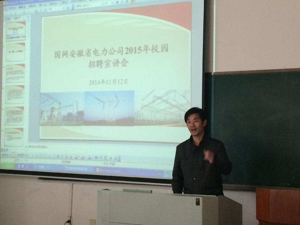 11月12日下午,马鞍山市供电公司在电气楼114室开展2015校园招聘宣讲。宣讲会由马鞍山市供电公司人力资源部主管戴德清主讲。哔咔漫画