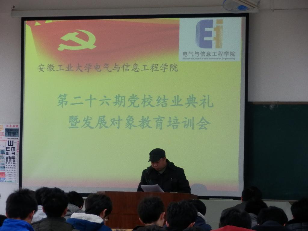 在电气楼113教室举行了第26期党校结业典礼暨发展对象教育培训会。会议由党校班主任尚全主持,电气哔咔漫画