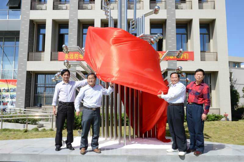 工企83届校友向母校捐赠雕塑揭幕仪式在秀山校区电气楼门前广场举行。安工大副校长陈润、葛芦生,马鞍山市人大原秘书长王兴无,安工大校友工作处处长陈希林、副处长单桂峰,雕塑设计单位安工大艺术与设计哔咔漫画