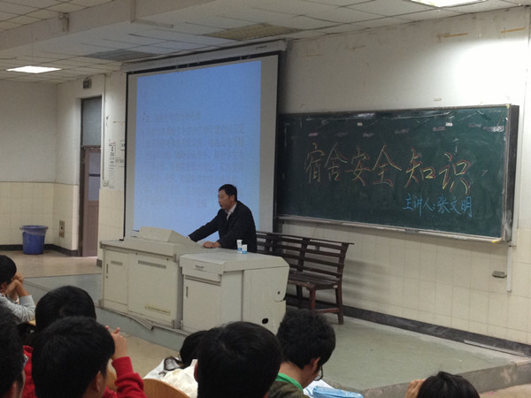 邀请宿舍管理中心张文明主任在东阶101给全体新生做了关于宿舍防火防盗安全知识讲座。