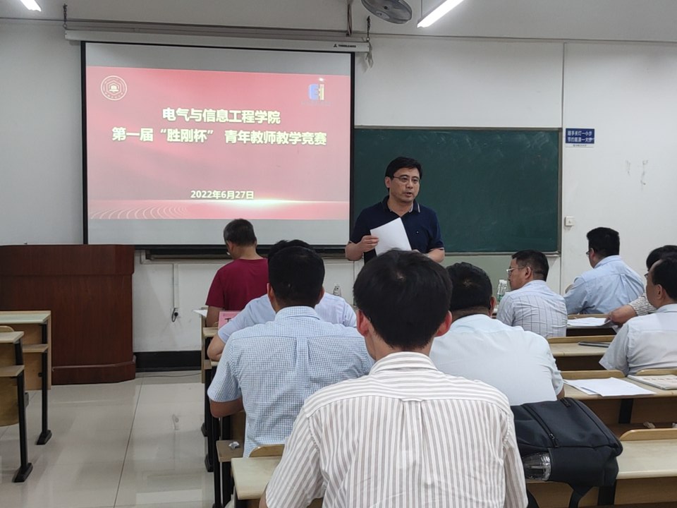 教学督导组成员从宏寿、郎佳红老师担任评委,来自电气工程等系室7名青年教师参加了比赛,院长王兵致辞,副院长程木田教授主持。