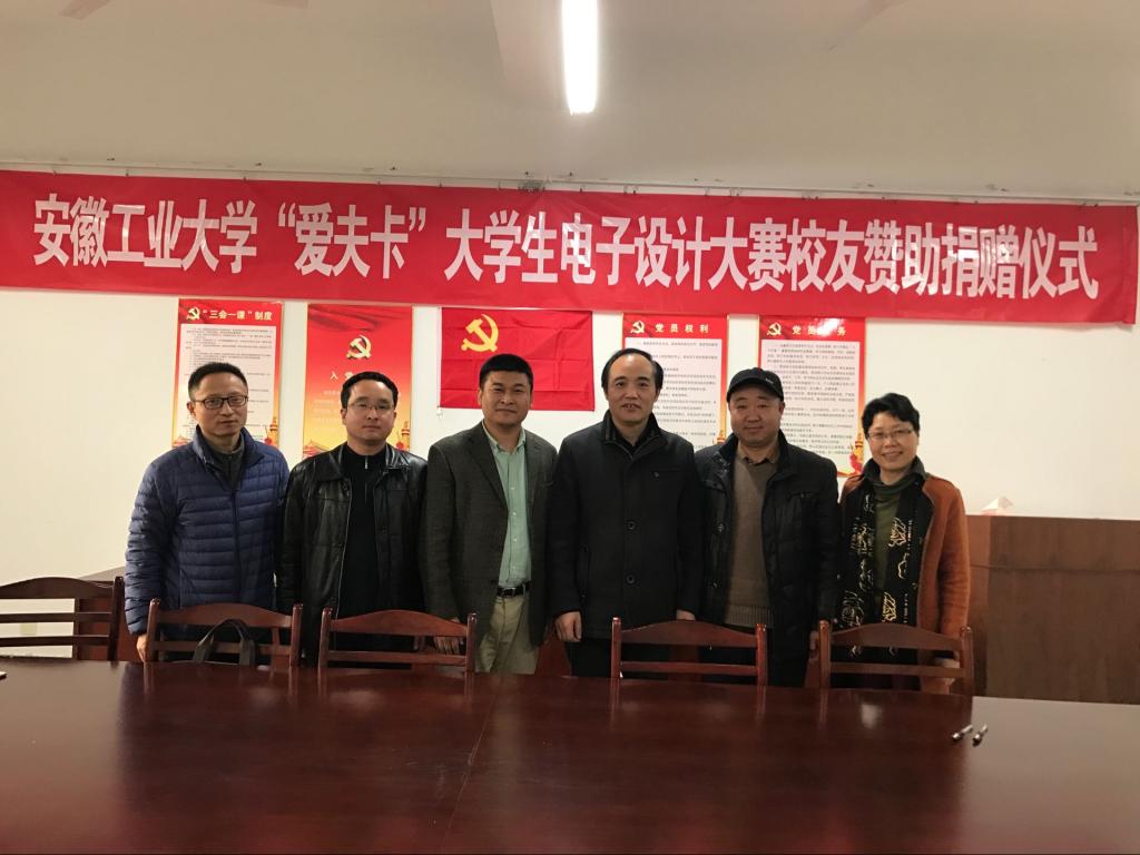 报告会后,在电气楼会议室举行了安徽工业大学“爱夫卡”大学生电子设计大赛赞助捐赠仪式,深圳市爱夫卡科技有限公司总经理姚勇、学校校友工作处处长单桂峰、哔咔漫画
