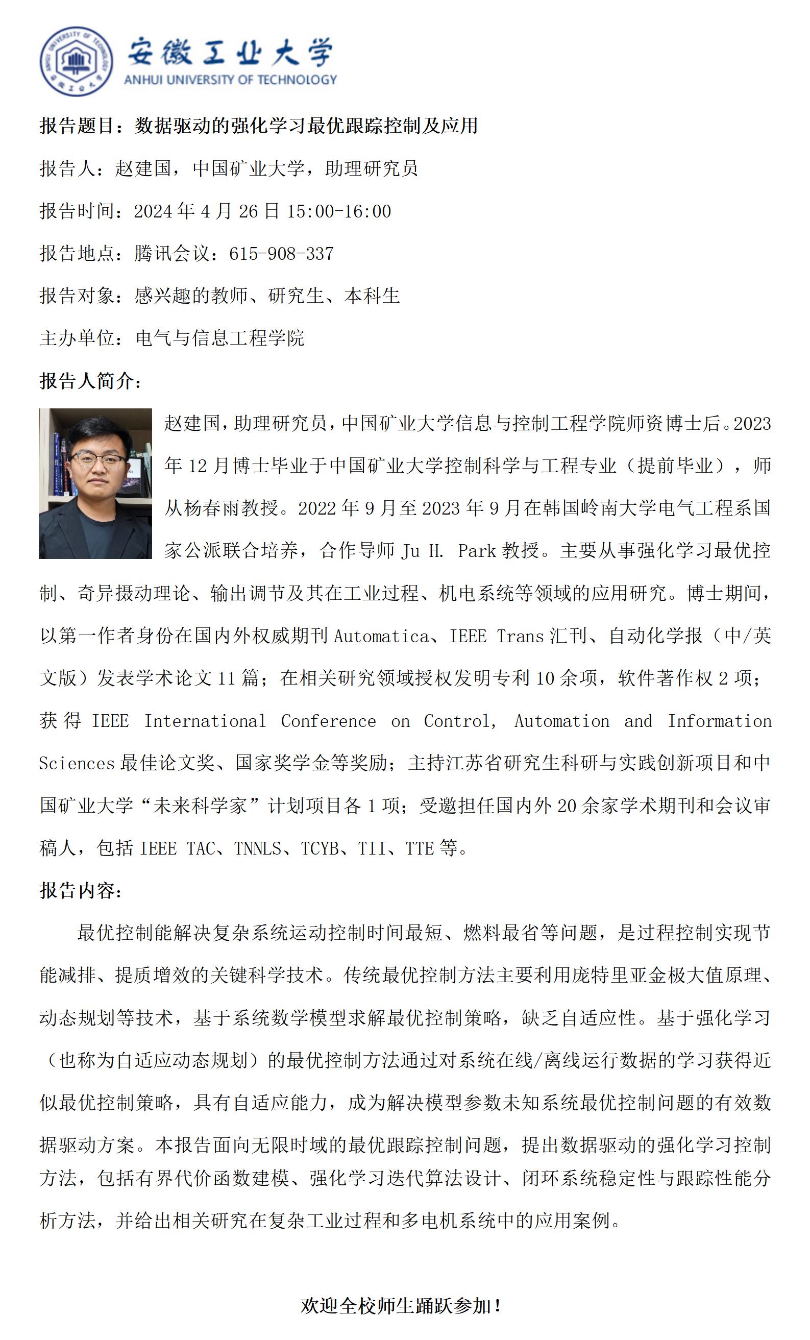 砺山学术报告之三十五-数据驱动的强化学习最优跟踪控制及应用