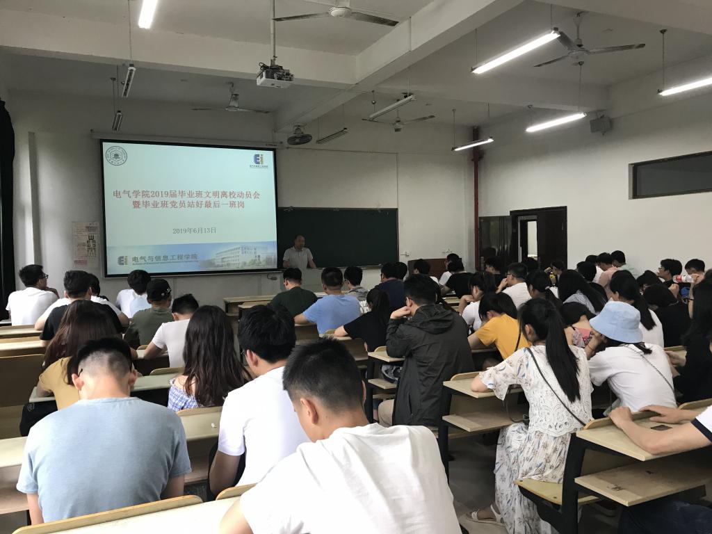 在电气楼113召开2019届毕业生文明离校工作布置会。院党委副书记、副院长郭宏,2019届毕业班辅导员,毕业班全体学生党员、主要学生干部参加了会议。
