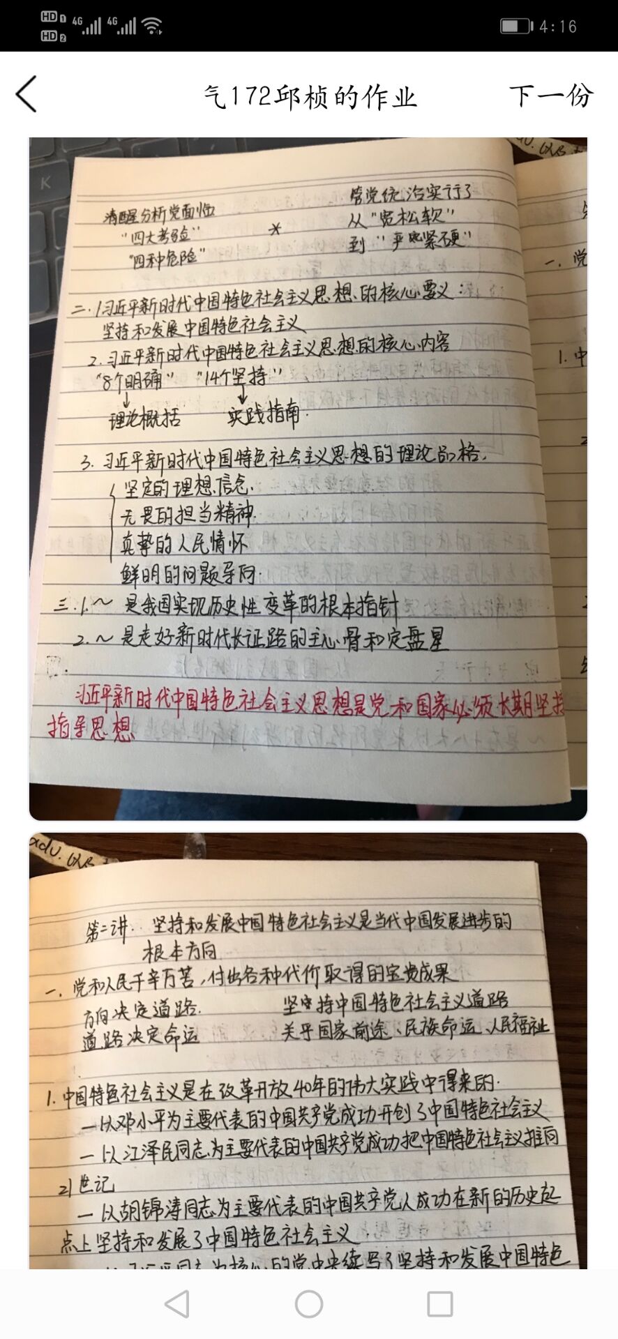 评比前,分党校班主任利用班级QQ群中的作业功能布置上传笔记图片任务,参加培训的53名学员按时全部上传了自己的笔记。评比中采取集中观摩、线上点评等方式进行,标准突出表现为三个方面:一看线上课堂内容把握情况,重点看学员对于线上培训内容是否记得齐全;二看书写认真规范程度,重点看学员书写是否认真细致;三是看学员态度及思想状况,重点看笔记后是否有思考小结、是否有心得体会。一张张学习笔记图片,书写工整,字迹娟秀,充分展现了学员积极学习、乐于思考、认真细致的"精气神"。线上点评的过程中,学员们纷纷表示:写笔记不止是一种形式,更是一种精神,一种热忱,一种感悟,不仅用传统方式让大家重温了书写的乐趣,也在记录的过程中提升了自己的理论水平。