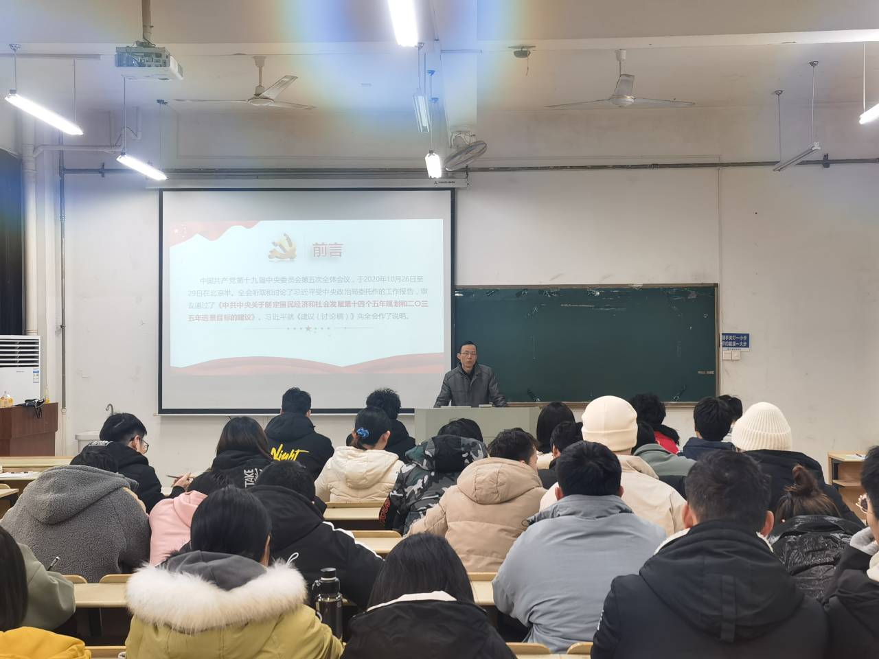 党委书记丁忠利在电气楼112,以《党的十九届五中全会精神解读》为题,为哔咔漫画