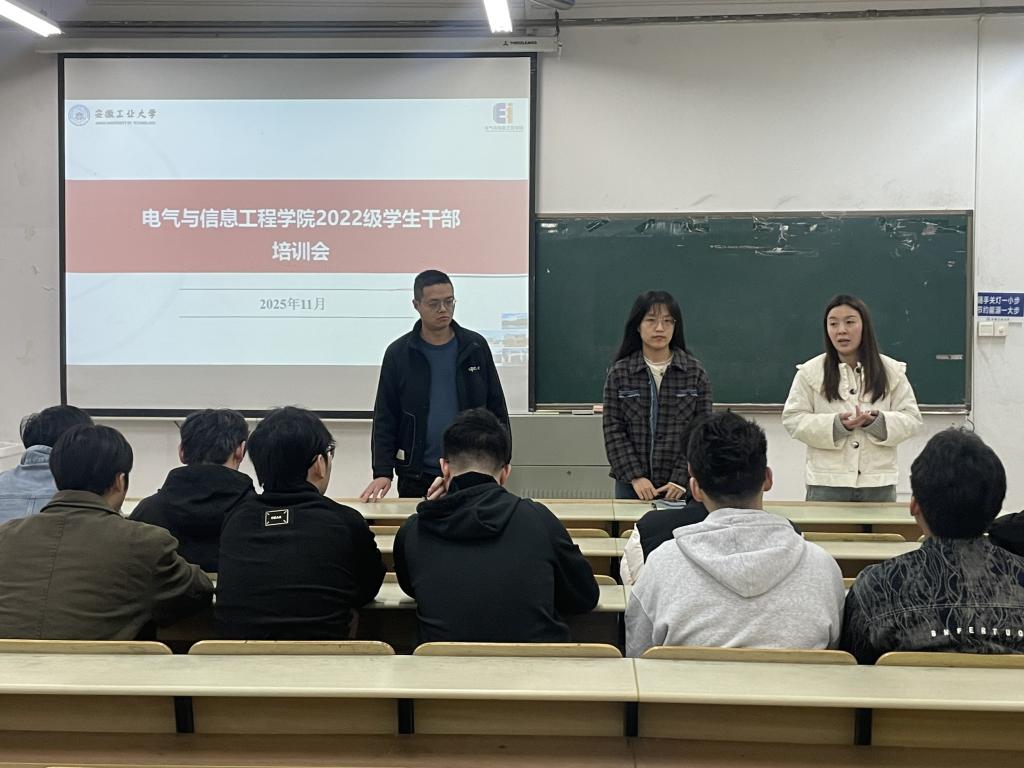 在电气楼112召开2022级学生干部培训会。会议由辅导员甘如美江、杨恒基、孔瑜琦共同主持,各班主要学生干部参加。