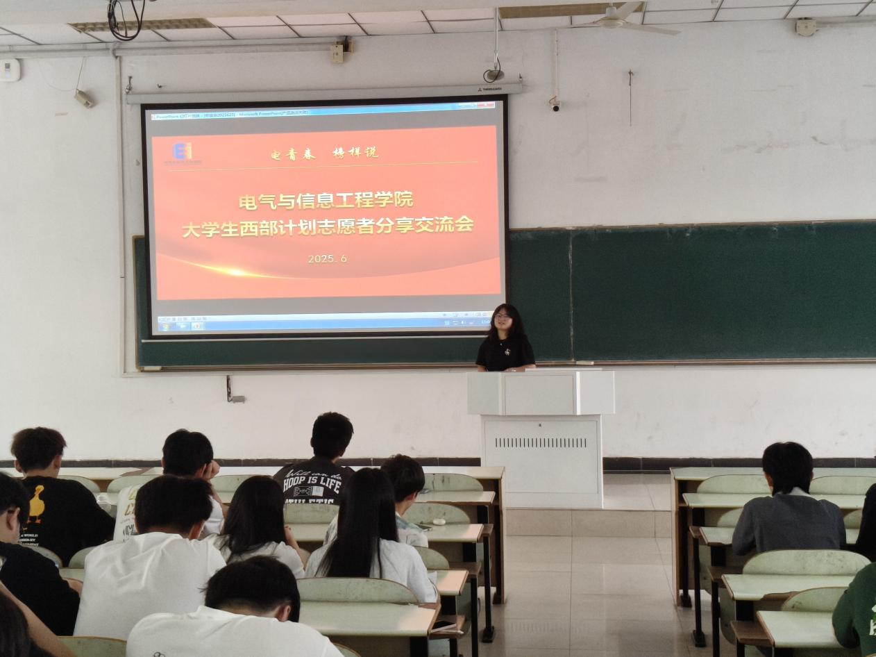 高金鹏凭借过硬的政治素质、强烈的奉献精神和突出的综合能力,成功入选安徽亳州涡阳县西部计划志愿者。他说,“入选那一刻,自豪感油然而生,更深知肩头责任之重。”他满怀憧憬地介绍了自己的服务方向与目标,期待发挥专业所长,为区域发展贡献智慧与力量,在服务社会的生动实践中诠释青年使命。即将启程贵州的吴玉娇详细阐述了西部计划对大学生的诸多益处,并重点介绍了西部计划的招募流程、备考经验以及岗位分配等。她动情地讲述了贵州广阔的发展前景和对人才的渴求,“那片土地有太多值得探索、奉献的空间,我渴望用青春为贵州建设添砖加瓦。”分享会上,两位志愿者用真诚而富有力量的语言,呼吁学弟学妹在毕业时把握机会,在西部热土书写精彩人生,在服务中实现人生价值。