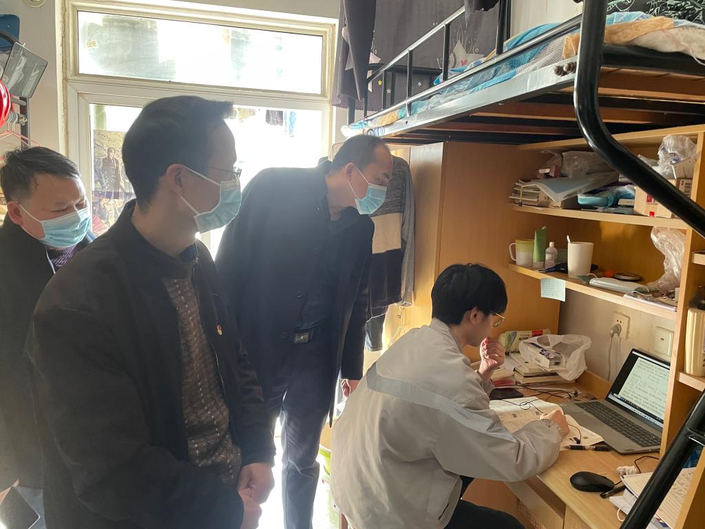 党委书记丁忠利,副书记、副院长夏玉钦带领辅导员深入宿舍对线上教学活动和学生学习情况进行了检查。