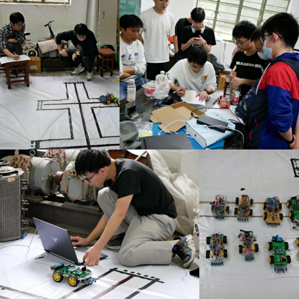 在佳山校区工企楼109举办科技创新班智能循迹车竞速选拔比赛。本次活动有近二十组2021级参赛队伍参加,高年级学生对作品进行指导和评审。