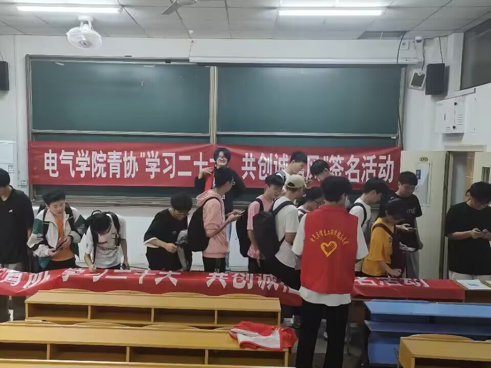 组织诚信主题教育签名活动。老师和同学们在条幅上郑重签上自己的名字,引导同学们重诺言,讲信誉,守信用,争做诚实守信大学生,现场气氛热烈,秩序井然。