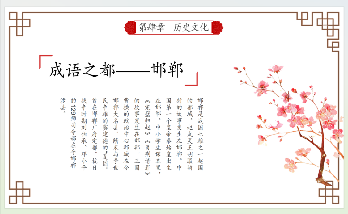 图为宣讲PPT中邯郸历史文化介绍展示图。实践队员徐斌艳供图