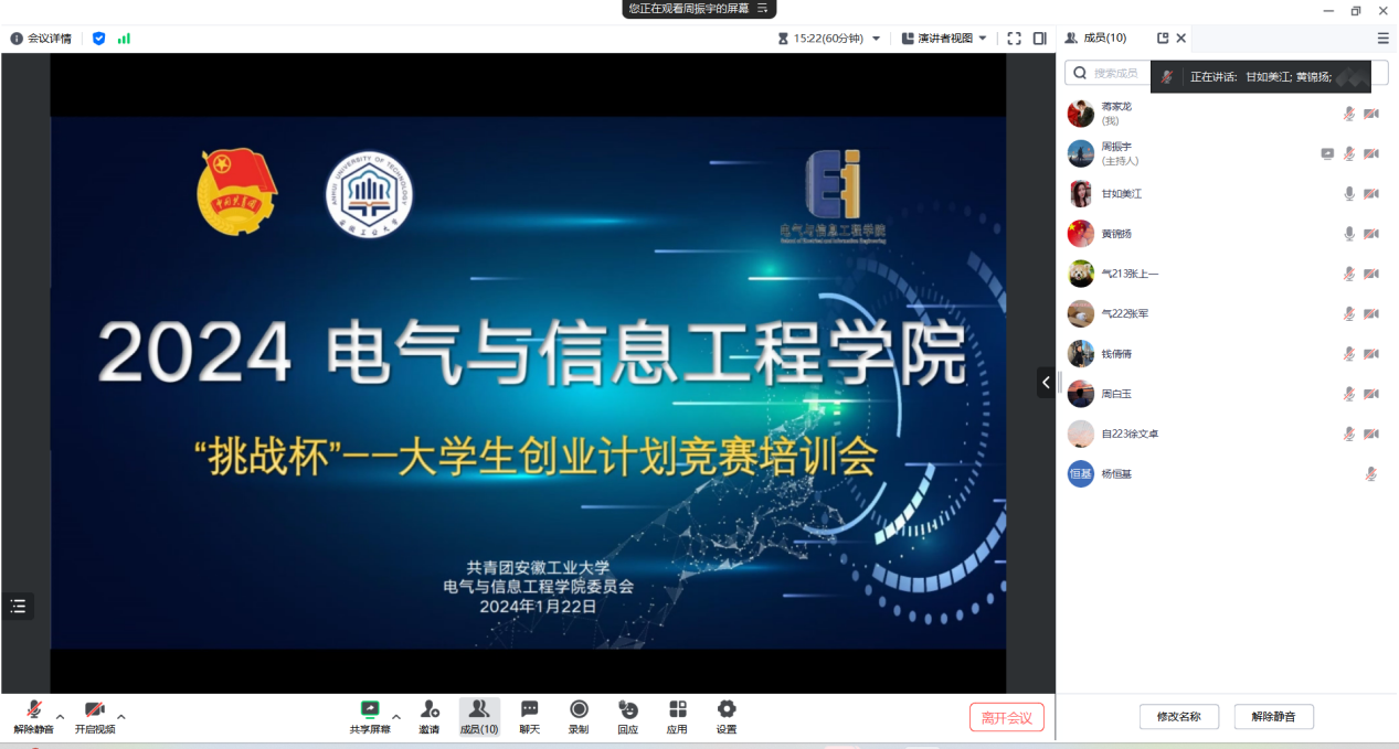 、学校权威专家对参赛作品进行赛前指导,参赛团队师生也在积极备战、不断完善作品。寒假中,院团委将继续组织入围项目线上模拟答辩活动,为参赛学生团队提供赛事政策解读与答辩指导,帮助学生及时检测自身的不足,赢在寒假,为即将到来的校赛做足准备,力争优异成绩。