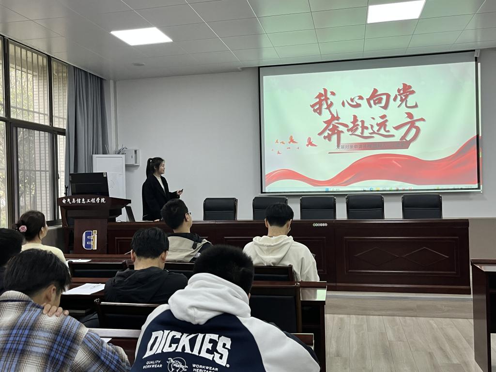 党员发展工作的流程,成为党员应必需的条件与要求,并强调本次答辩会将从入党积极分子的政治立场、思想觉悟、群众基础等多方面考察。随后,参与答辩的同学从入党动机、学业成绩、竞赛情况、志愿服务等方面详尽地汇报了自身情况,积极展现出入党的决心和为人民服务的信念。与会老师根据每位同学的答辩情况,提出了问题与建议,强调入党积极分子要坚定理想信念,继承和发扬无私奉献、积极进取的精神,要从思想和行动上向党组织看齐,在学习和实践中不断端正入党动机。