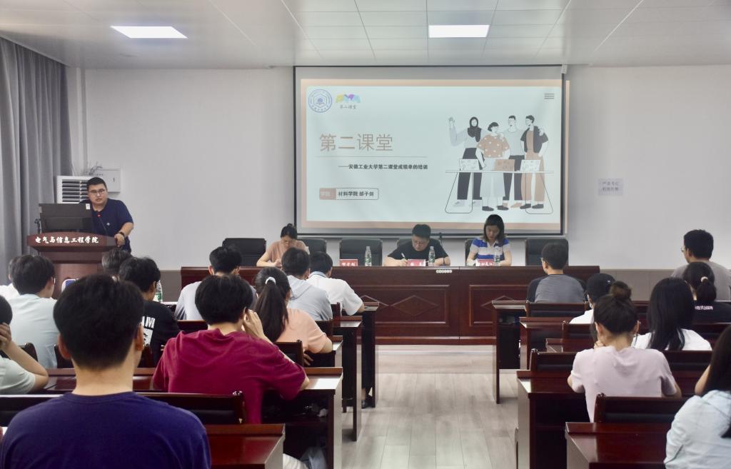邰子剑老师详细解读《安徽工业大学“第二课堂成绩单”制度实施办法》,并向大家明确了第二课堂成绩单的内涵及其对本科学业生涯的重要影响和意义。从第二课堂积分认定标准、积分换算标准、活动参与情况、活动审核与积分发放等多方面详细介绍了“到梦空间”的具体使用规则,重点阐释了“思想政治素养”“社会责任担当”“实践实习能力”“创新创业能力”“文体素质拓展”等五大模块的积分要求,并对同学们的提问一一进行解答。最后,电气哔咔漫画
