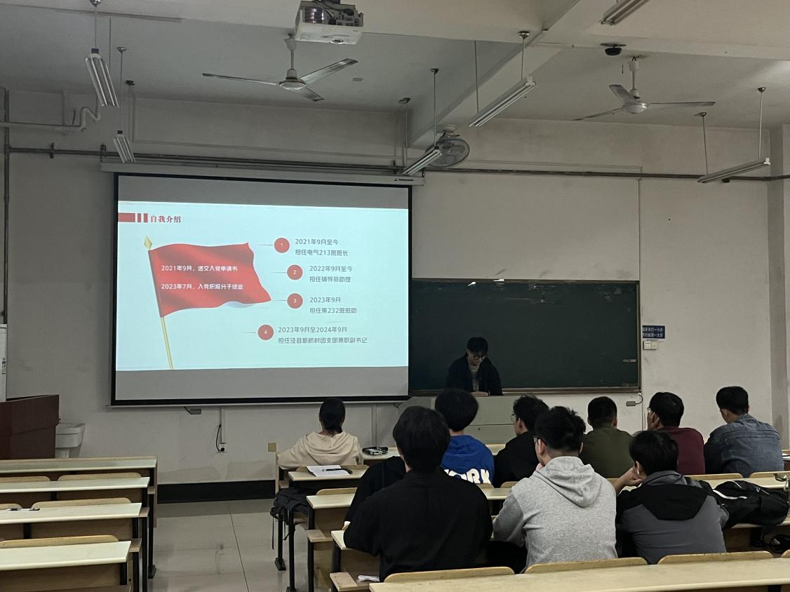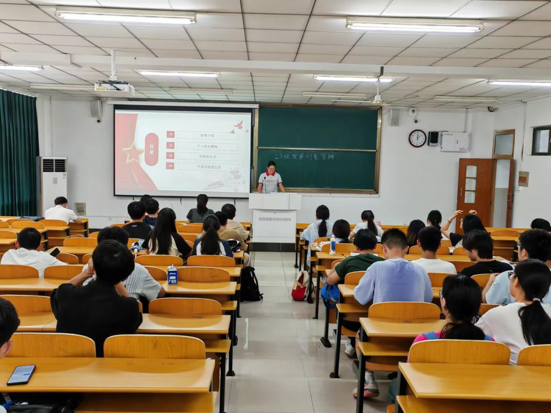党员发展工作流程,强调全体入党积极分子要努力提高政治站位,不断端正入党动机,积极开展实践服务,努力向党组织靠拢。随后,答辩同学从思想成长与理论学习、学习情况、入党动机、志愿服务、社会实践、学科竞赛、党团活动参与情况、不足和改进等方面全面汇报自身情况。与会老师认真听取每位同学的陈述,并根据答辩内容进行了细致提问和点评。
