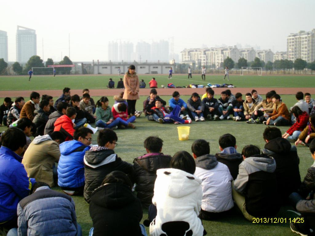 在东区体育场举办了第一届“团体心理游戏”活动,大一11个班级大约260多名同学参加了活动。