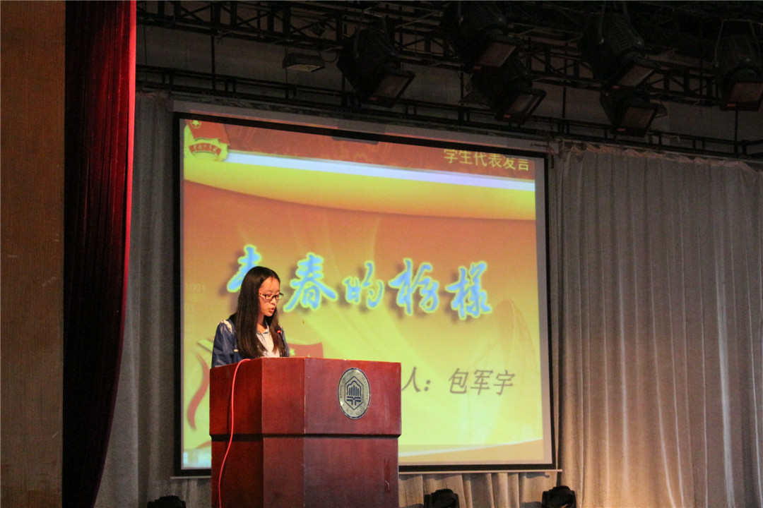 一段精彩的开场短片映入眼帘,轻快的音乐和唯美的画面使得同学们深深体会到这场仪式就像是属于青春的成长礼。在主持人的带领下,全体师生进行了升国旗、奏唱国歌、迎团旗、合唱团歌等多项活动,通过视频深入了解了共青团的发展历史。诗朗诵《放飞青春》声情并茂,歌曲《精忠报国》慷慨激昂,展现出青少年的蓬勃生机,老生代表包军宇作了以《青春榜样》为主题的发言,向新生们阐释了人生目标的重要性。紧接下来颁发“三证”,各班团支书有序走向舞台,活动嘉宾为各团支部颁发三证,团委副书记武梦娇带领大家激情宣誓。最后,郭宏副院长致词,对本次活动进行总结,希望同学们要正确认知大学生活,努力学习,不断奋斗,做一名合格的共青团员。